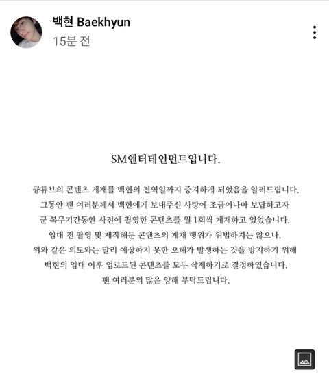 백현 수익창출도 안하는 유튜브인데 ㅋㅋㅋㅋㅋㅋㅋ 아니 그냥 스엠이 너무 빡침 소속사는 폼이야?? 오해가 있을 것 같으면 공지를 띄우든가 해서라도 조치를 취하고나서 삭제하던가 해야지 갑자기 무통보 삭제에 “오해가 생길것 같아서” 멘트가 너무 빡침 평균이하집단