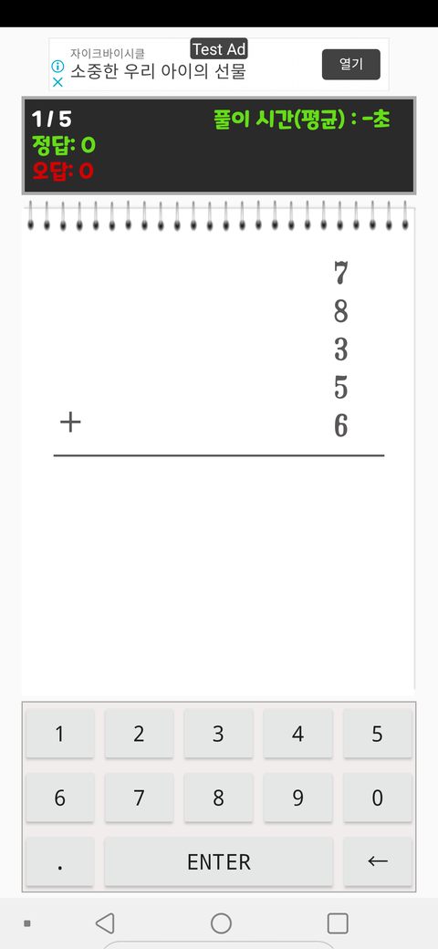 굉장히 발전했죠? 이게 끝나면 뺄셈.. 그리고 곱셈과 나눗셈도 꾸준히 연습하려구요.