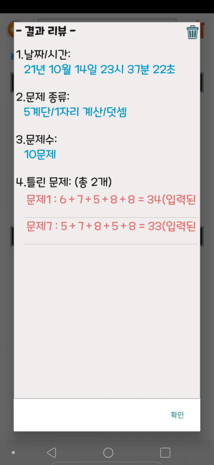 점점 정답률은 올라가고 풀이 시간은 줄어들고!! 나도 암산 실력이 늘어나는 구나~~^^