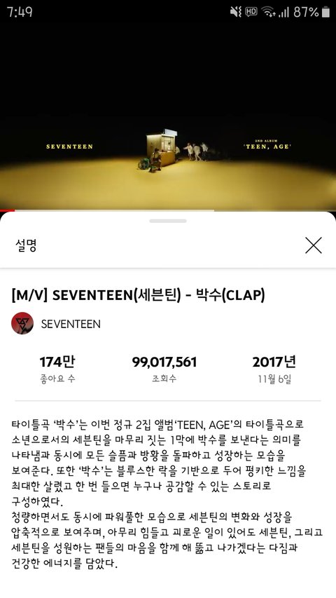 ㅅㄷ) 박수 뮤비 9900만뷰 돌파!