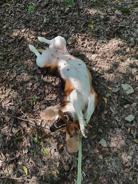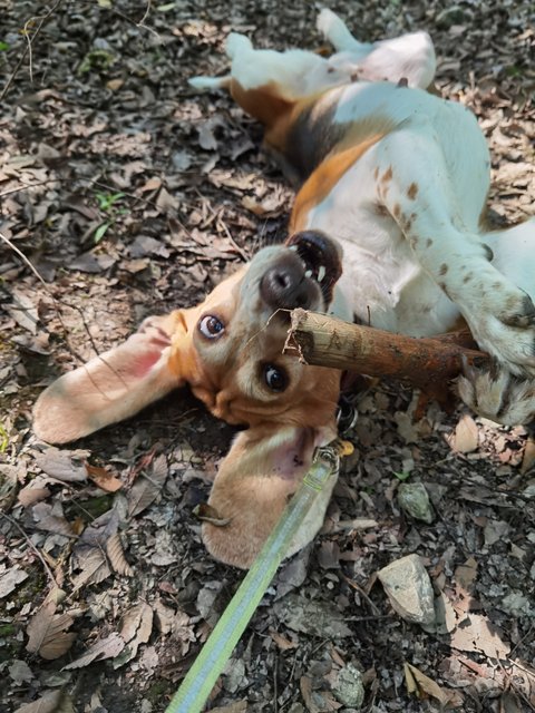 나뭇가지 하나 주워들고 세상 행복한 우리 근육소녀 비글이~^^