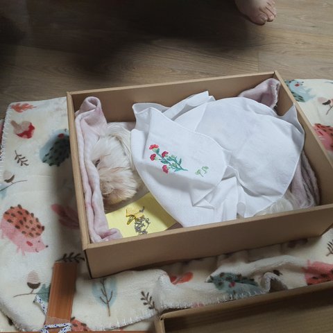 그런 애가 이제는 제가 수 놓은 손수건에 감싸져서 마당에 묻혔습니다. 아직도 조막만 한 발자국 소리를 내며 제 무릎 위에 있을 것만 같은데.