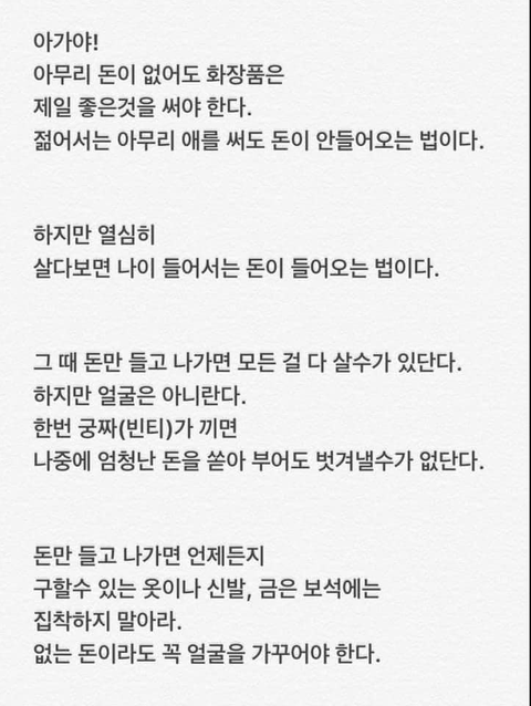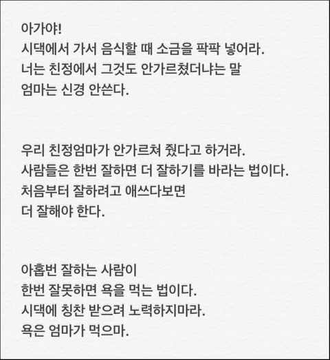 리얼 경험에서 우러나온 글인듯.. 어머니의 한이 느껴짐.