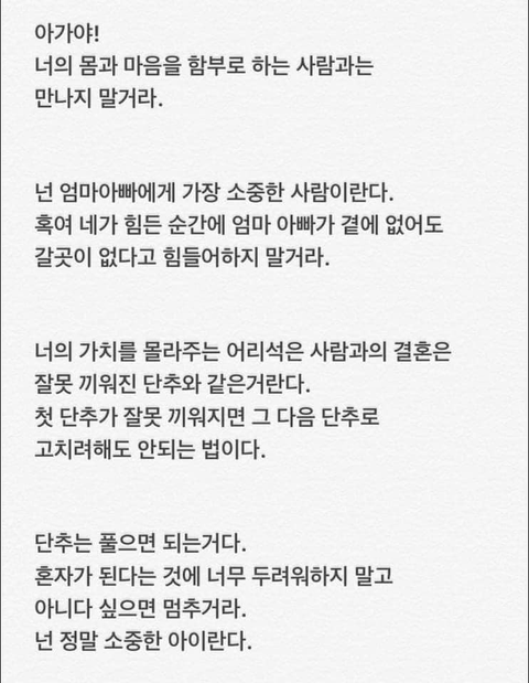 미래에 우리딸 결혼할때 보여주고 싶은 글이네요..