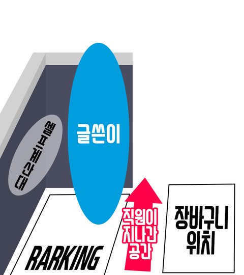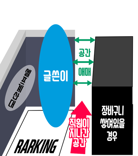 근데 만약 위 사진처럼 장바구니가 한두개일 경우에는 남자가 충분이 넘어다닐 수 있는 상황임. 근데도 접촉이 있었다면 이건 솔직히 고의 아니겠음?