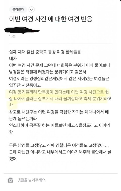 여경들이 무능한 모습 보여줘서 현장 나가지 마라며 지침 내려왔으니 여경이 전보다 필요없어졌으니 여경 채용 줄어들 예정