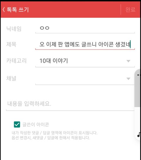 오 이제 판 앱에도 글쓰니 아이콘 생겼네