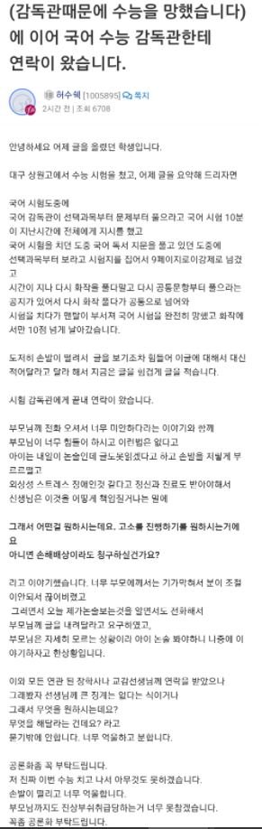 감독관의 실수로 고3 첫수능 망쳐버린 학생