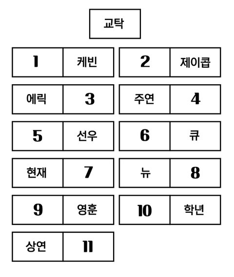 난 1번 형서 옆에 거머리처럼 앉아서 모르는거 물어볼래ㅋㅋㅋㅋㅋㅋㅋㅋㅋ마침 뒤에 영재도 있고 똑똑한 친구들한테 모르는것 좀 물어봐야게쒀 아 근데 학년이 옆에 앉으면 먹을거 많이 줄 거 같아서 저기도 좀 탐나네,,