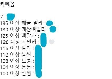 같은 키빼몸 120이어도 160/40이 170/50보다 훨 마른 건데 차라리 bmi 기준으로 하지