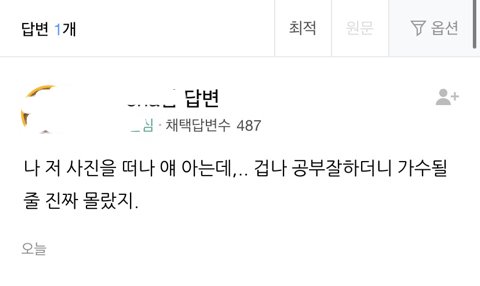 아이디는 혹시 몰라서 가림… 프로필 들어가보니까 주작은 아닌것같고 나이 좀 있으시고 학업쪽에 종사하는 분 같던데(그런 질문에 답변을 많이 하심) 도영이 아시는 분인가봐… 신기해