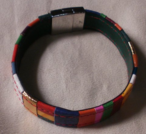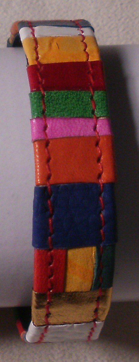여러가지 컬러 가죽을 사용하여 제작한 가죽 패치 팔찌입니다.(마디샤)