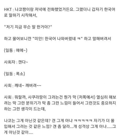 아이즈원 시절에도 나코가 활동하던 일본 그룹 hkt48 멤버들이 나코가 한국에 과몰입했다는듯이 돌려 까는 일이 있었음