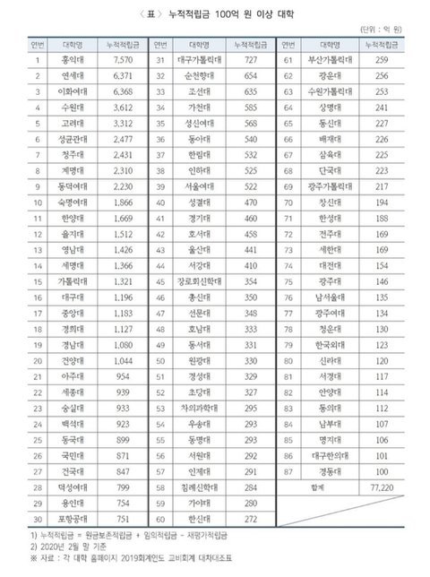 결론: (중하위권) 대학 선택할때 적립금과 재단 운영을 잘 보자!