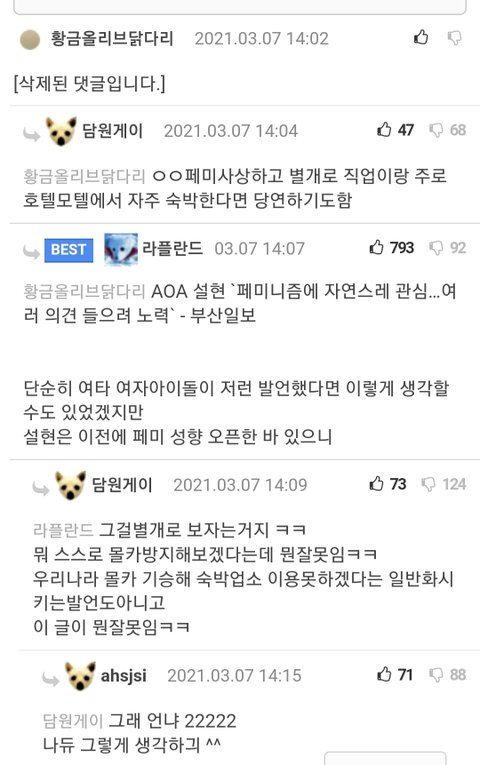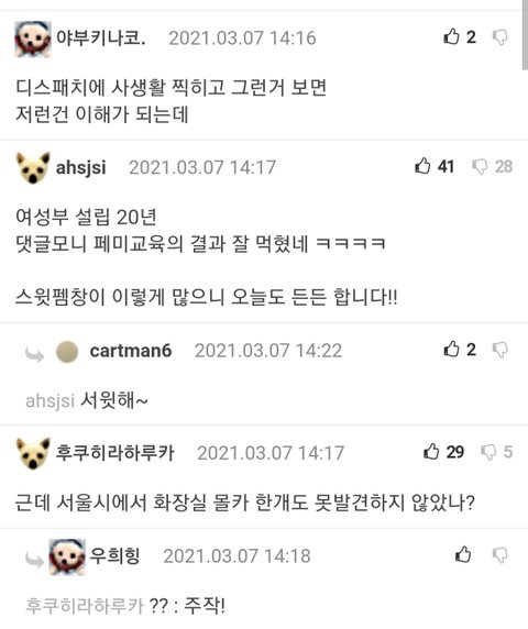 이런 글 많아졌으면 좋겠음 ㅠㅠ 남자들은 다 뭉쳤서 여혐하는데 왜 여자애들은 아직도 페미 소리 안들을려구 옹호해주냐 ㅠㅠ