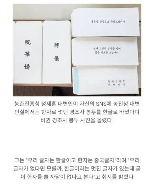 한자로 쓰인 경조사 봉투를 한글로 바꾼 이유