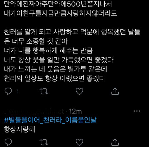 아 해시 들어가서 천프들 편지? 보고 우는 중
