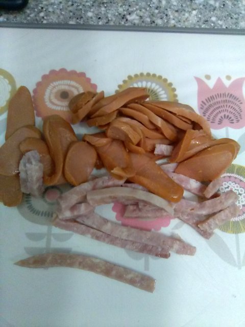 우선 부대찌개의 주재료가 되는 소시지와 햄?그리고 스팸을 썰어주고요(스팸이랑 소세지 같은 가공육 너무 살앙해요..^3^bbbbbbbbbbbbbbbbbbbbbbbbbbbbbbbbbbbbbbbbbbbbbbbbbbbbbbbbbbb)