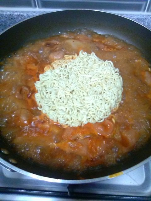 어느정도 국물이 진해보이는 게 눈에 보일 때 제품 속에 같이 들어있던 라면 사리를 넣어줄게요 ^_^(라면을 넣는 순간은 정말 행복해요..)