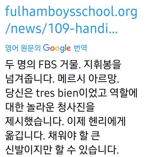오늘 드디어 헨리가 회장을 물려 받았네 진짜 수고 많았던 개척자로서 FBS 리더상을 제시하며 길을 열어준 아르망과 헤드보이팀 모두에게 감사의 박수를 보내고 싶다 헨리가 물려 받아서 모범이 될 일들은 배우고 한층 더 발전시켜서 영국 내 다른 독립학교들의 비전과 희망이 되길 얘들은 어린 나이에도 이렇게 기특하고 웅대한 일들을 하고 있잖니 근데 우린 여기서 동남아 팬이 어쩌니 저쩌니 하고 애들 사생활이나 궁금해 하고 그러는거 쟤네가 알면 참 낯 부끄러운 일이야 우리도 자기 할 일 열심히 하고 풀햄애들 좋은 점만 본받으며 건설적으로 살자