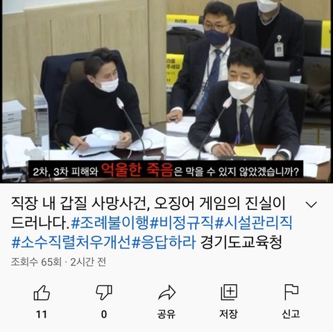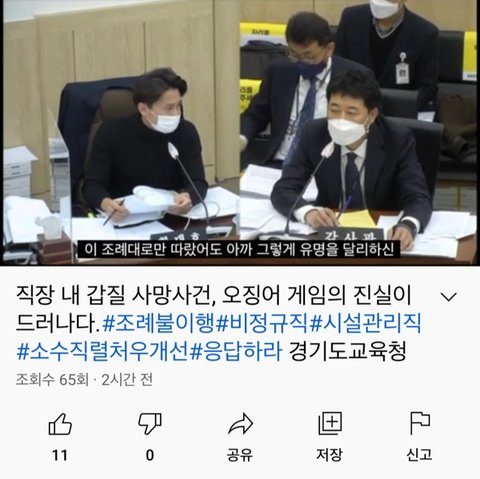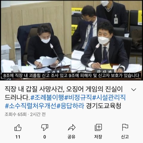 경기도청에서 진행되는 행정감사를 통해 지금까지 밝혀진 내용은 < 경기도교육청 직장 내 괴롭힘 금지에 관란 조례가 만들어졌으나부서간의 입장차이로 인해 결론 도출을 하지 못하였다 ..>소중한 사람은 떠나고 없는데 아직도 서로간의 책임만을 운운하고 있습니다.