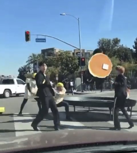 트램펄린 위에 팬케이크 봤어?