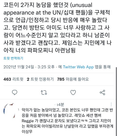 알엠이 "We appreciate your apology"라고 하면서 사과를 받으면서 훈훈엔딩 가다가 파파모찌 갑자기 아련해짐