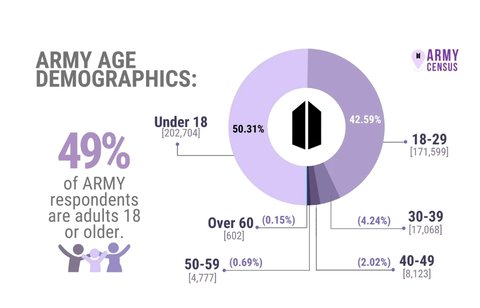 그런데 얼마 전, 코든이 실패한 농담을 해버림... 농담을 의도했으나 의도치않게 아미라는 팬덤이 어린 애들이라고 표현을 해버렸고(순화시켜서 표현할게ㅎ), 이에 미국 팬베이스에서 팬덤 인구조사 지표를 내세우며 반박했었음.