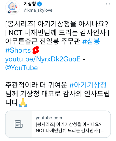 엥ㅋㅋ 기상청 공식유툽에서 재민이한테 영상편지