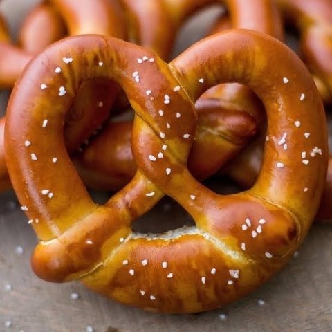 한 입 크기로 프레첼을 찢어 자기 입에 넣어주는