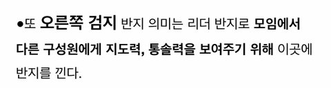 내가 그냥 궁금해서 반지 낀 위치의 의미를 검색해봤는데 의미가 정확한건 아니지만 그래도 잘 맞는 것 같길래 보여주고 싶어서 가져왓당
