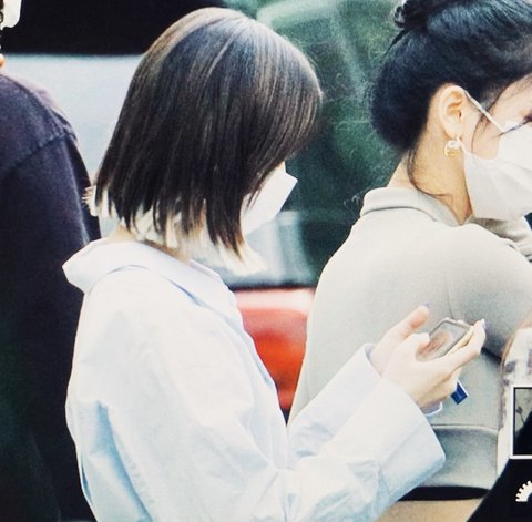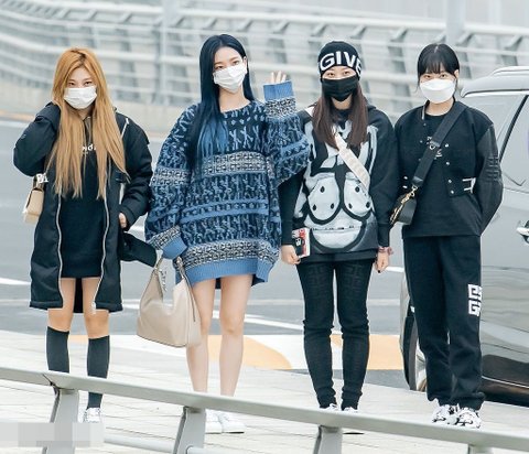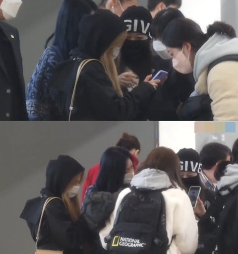 공항 사진 모니터링하는 에스파 멤버들
