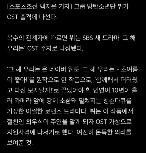 방탄소년단 뷔, 최우식 주연 '그해 우리는' OST 가창 '찐친 의리' | : http://naver.me/FjlhOUAD
