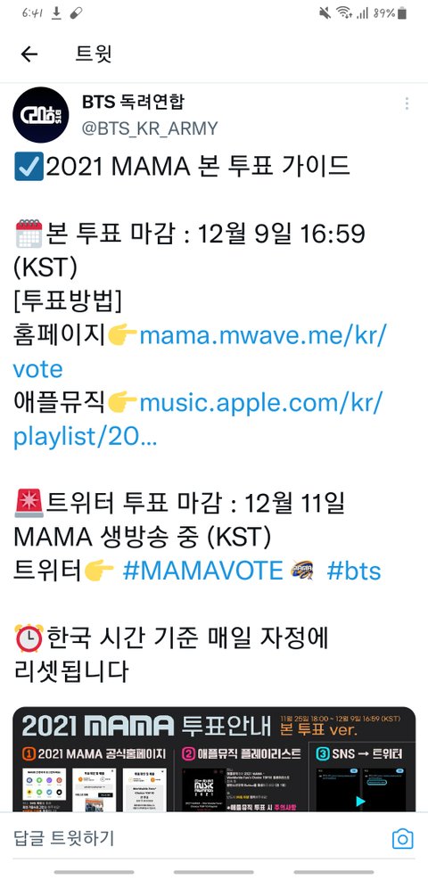 ⚠️맘마 투표 시작됐고 중요함/ 튭 안하는 아미 없어야해