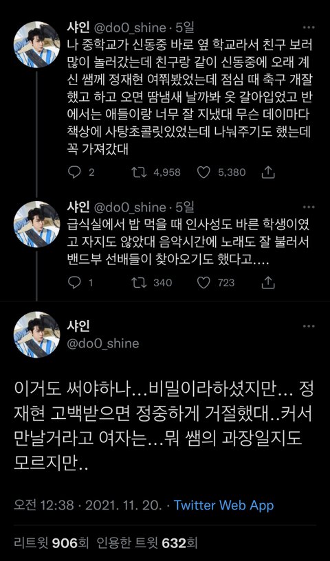 추반용) 재현 과거썰 늘 좋으니까 발작하는 여연갤 아줌마 또옴 늘 입에 더러운 여연갤 필터링 쓰고 사는분임 먹금하쟈 게임카페 싸이월드 초6~중3 페북까지 다털려도 여자얘기 하나 안올린게 재현인데 폰동창짓 시작임 // 트윗 저사람은 참고로 신동중 인증함