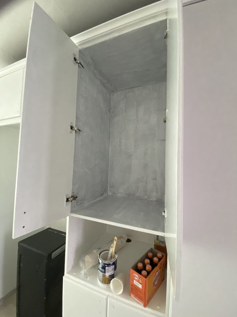 주방벽 시트지 시공예정이었는데 전 세입자가 붙혀놓은 도배지 제거않고 그위에 페인트칠 해놓음.
