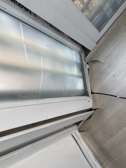 페인트 칠하던 할아버지가 화장실 시트지 작업해놓음.