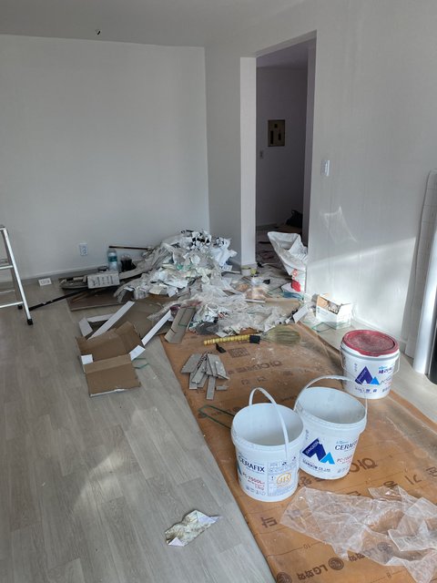 진행된 작업이 너무 엉망이라 안방 도배(사장이 직접 했던)는 아예 전체 다시하고, 아예 안해놓고 간 주방, 베란다 장판 등등 일일이 나열하기 힘들만큼 많은 작업을 새로 진행하는 중임.