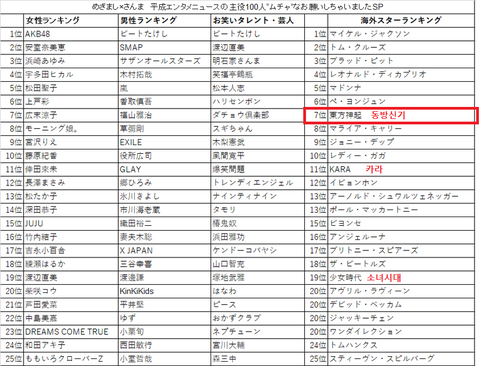 지난 30년간 일본에서 인기있었던 해외스타 순위 (1989년-2019년)