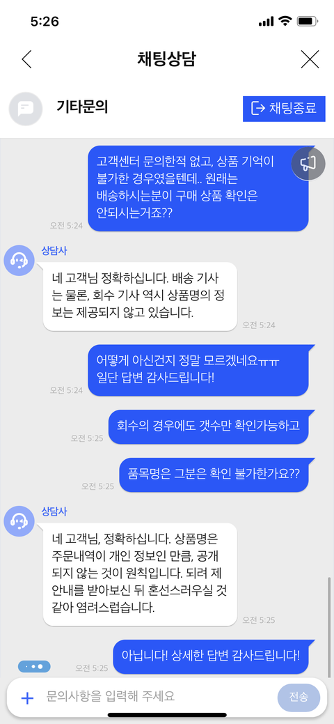 어제 저는 쿠팡 물품 반품과정에서 쿠팡맨분께 전화를 받았습니다. 여러 품목을 반품 누른 후 일부 품목에는 반품의사가 사라져 철회를 하려했으나 있고있었습니다. 쿠팡맨분께서 일부 상품이 문밖에 나와있지않다고 말씀하시는 과정에서 품목명을 말씀하시더라구요. 일단 그 제품은 반품철회 예정이라고 말씀드리고 전화를 끊었습니다. 그후 곰곰히 생각해보니 기사분이 어떻게 제 물품을 아셨는지, 쿠팡은 원래 알 수 있는 시스템인지 생각을 해보았습니다.