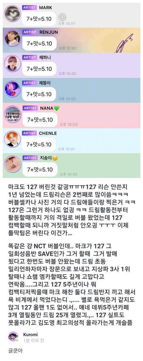 더 춤잘추고 무대잘하고 케미스트리 좋고 호흡잘맞는 드림 기회 뺏고 군입대 반년남은 늙은 형들이랑 자기 붙여주는데 홧병나서 페이보릿 컴백전날에 천러집에서 고량주까면서 스엠욕햇대