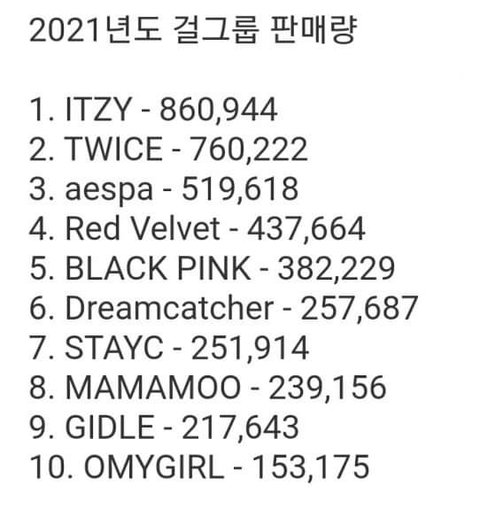 2021년도 걸그룹 음반 판매량 TOP10