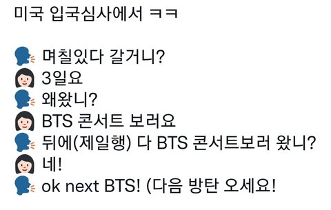 방탄 팬인 내 친구 미국 입국심사 썰ㅋㅋ