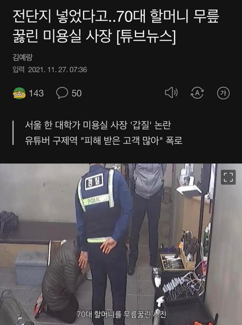 그냥 전단지 한장받고 말지 이 겨울에 어르신 무릎까지 꿇게해야 했나 ㅅㅂ 진짜 인류애 사라지게 하네 머리하러 꼭 가서 진상이 뭔지 꼭 보여줘야겠네