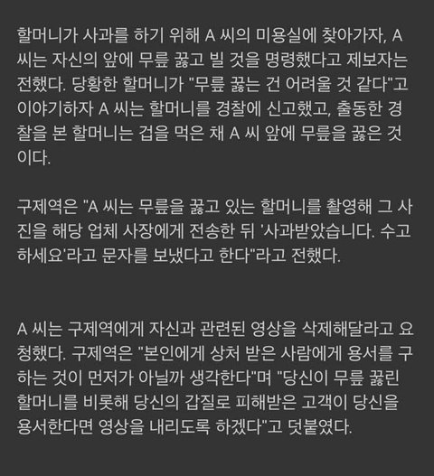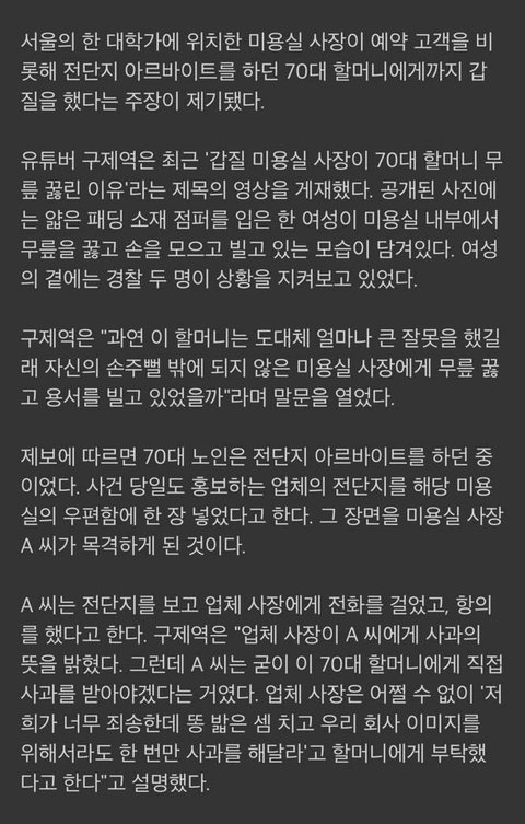 전단지 넣었다고 70대 할머니 무릎 꿇린 미용실 사장