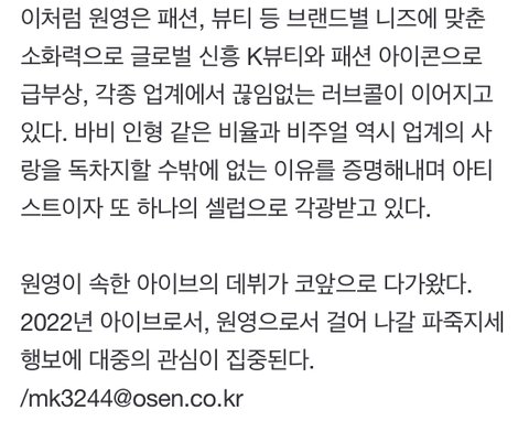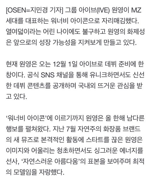 아이브 원영, 뷰티 모델부터 ‘뮤뱅’ MC까지..MZ세대 워너비 아이콘