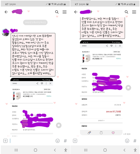 처음글 봤을때 가장 의아했던 부분은 주문후에 배송까지 보름 걸리는데 중간에 취소가 가능하냐는거임.. 방금 주문하고 바로 취소하지 않는 이상 배송준비중 또는 배송중일텐데 저렇게 쉽게 취소가됨? 주문 시간을 좀 봐야할것 같은데 ㅋ
