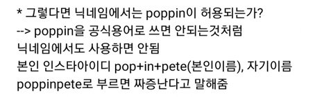 * poppin ≠ poppin' (poppin은 닉네임에만 쓰는것ㅋㅋ)