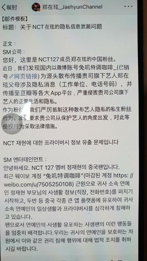 오늘 오전 부터 중국 제프들이 스엠한테 재현이랑 가족분들 정보유출 막아주고 사생 고소하라고 이메일 보내고일음
