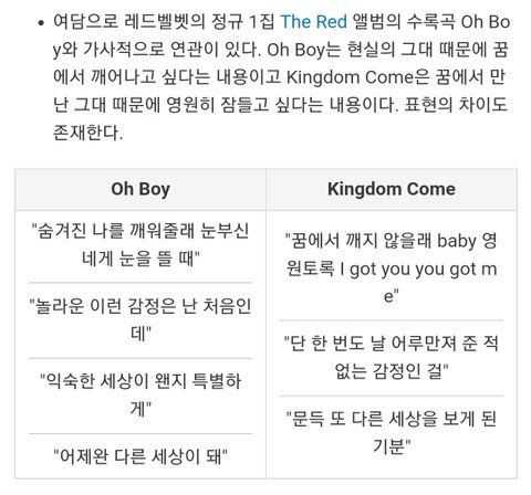 킹덤 컴은 꿈의 그대 때문에 꿈에서 영원히 깨고 싶지 않다는 가사임...